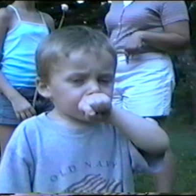 "Light Lunch" Young boy swallowed a flashing light. See it blinking red through his stomach / skin. Older brother dances in his underwear in background. Weird, Odd. Diode