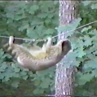 Man tries to walk tight rope at park, rope snaps up and hits him in the crotch. Bonehead.