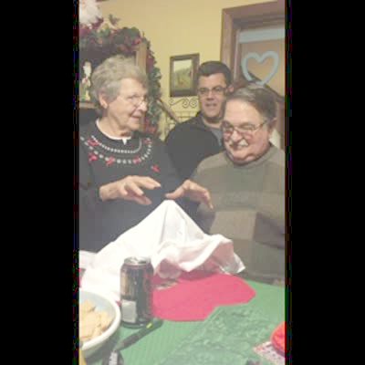 A senior woman does a magic trick to a senior man with a water bottle before splashing water in his face.
