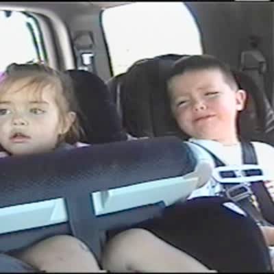 Tot boy and girl whine about having to leave the park. They sit in the back of car and scream in unison.
