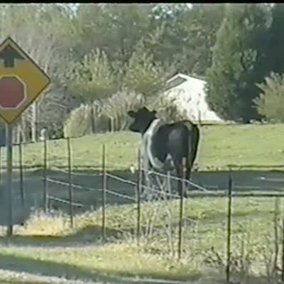 A young woman runs toward her front door pursued by a herd of goats and goes inside her home. When the goats are distracted, the woman runs out of the house again and the goats follow her once more. She finally loses them and they wander off. Security footage.