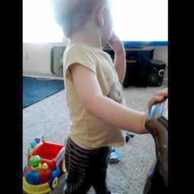 "Pensive Pooper" A tot boy is bending over while watching TV. Mom asks if he's pooping. He says "no...I'm thinking." Cut after 0:15.