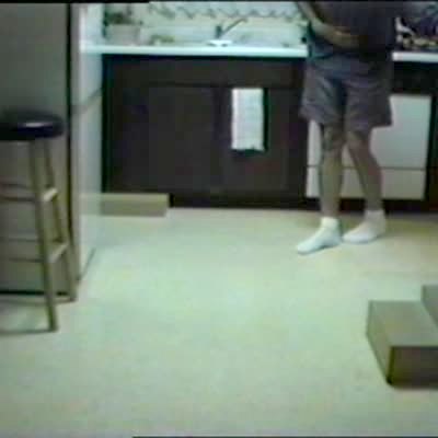 Two boys wrap rubber bands around a watermelon on a table at home until it suddenly explodes, breaking a light fixture above it at 3:40