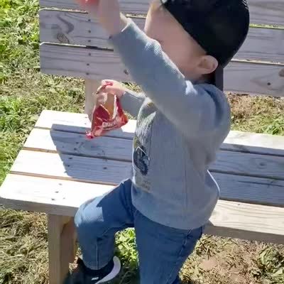 A tot boy waves his arm outside, and a woman asks if he waves to a tractor. He says "yeah," then the woman asks him if he thinks the tractor can see him, and he says "no."