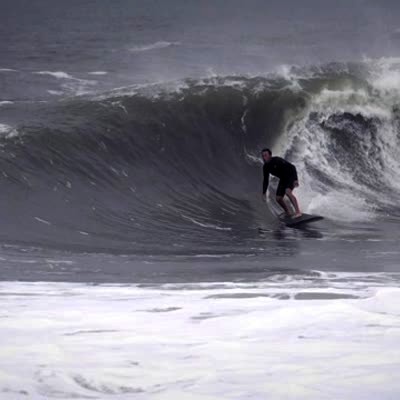 A young girl rides a boogie board when a wave crashes over her. Featured talent cleared (teen on the surf board).