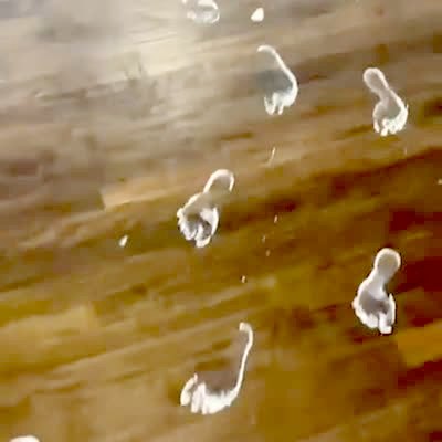 A woman follows a trail of white footsteps to a kitchen where she finds both her tot son and the floor covered in white paint.