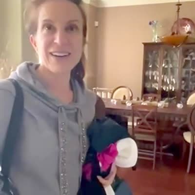 A woman in a kitchen finds a blue egg in the Thanksgiving turkey that she cooked. She tries to figure out where it came from. At 2:30, she realizes that her daughter is having a baby boy. Gender reveal practical joke.