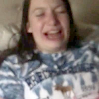 A teen girl cries in a living room after wisdom tooth surgery and says "if I look like Kim Kardashian I'm going to cry." A man asks her if he can bring her a mirror, but she says that she does not know where it is because her room should be on the show "Hoarders."